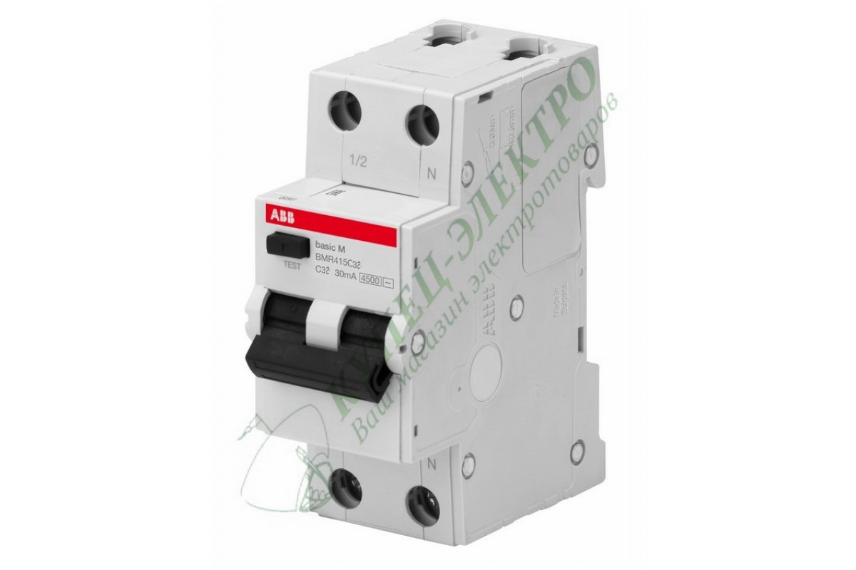 Авт. выключатель дифференциального тока ABB, 1P+N, 32А, 4.5kA, 30мA, тип AC, BMR415C32 (2CSR645041R1324)
