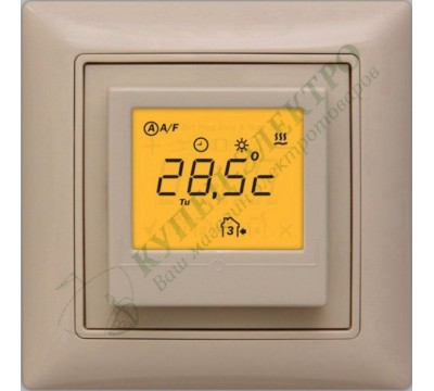 Электронный терморегулятор с датчиком пола, оснащен ЖК-дисплеем и 4-мя кнопками управления.