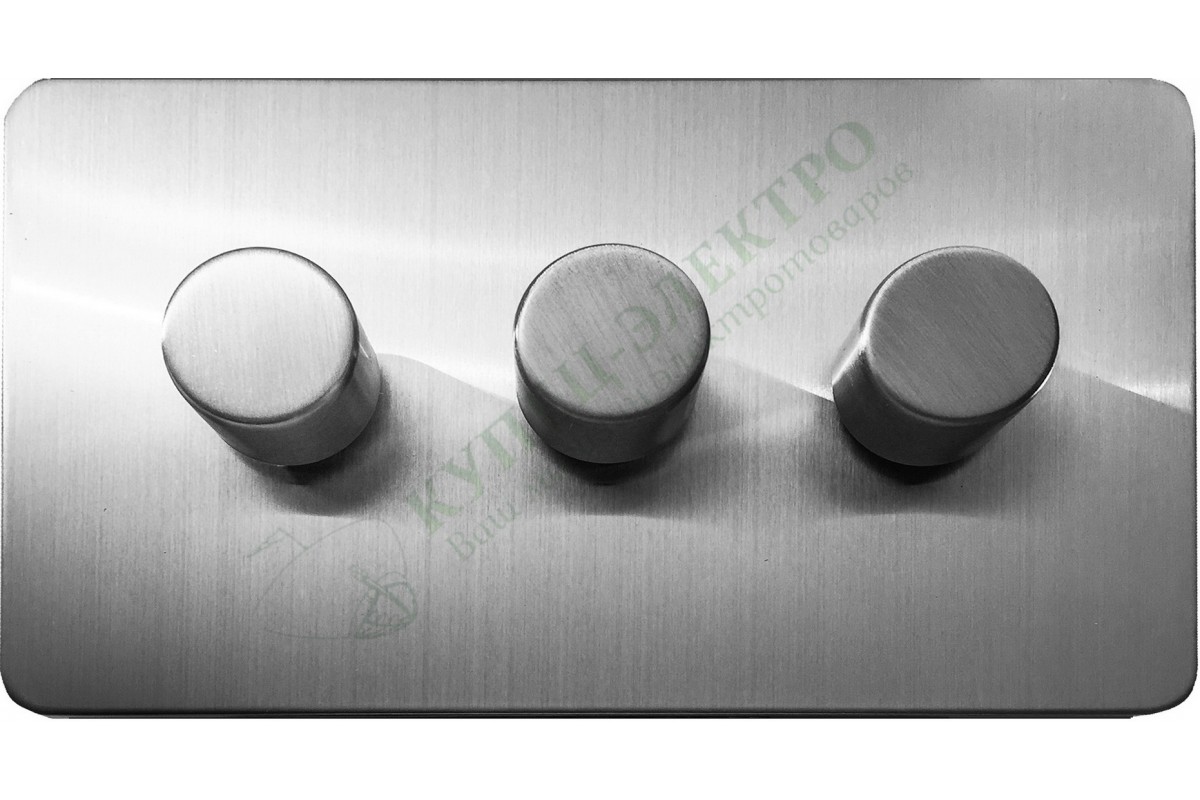 Светорегулятор трёхклавишный проходной 250В. 500Вт LED 100Вт, серия Excellent, цвет Матовая сталь