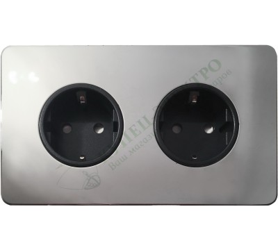 Розетка двойная с заземлением и шторкамии 16А-250В, серия Excellent, цвет Полированая сталь