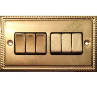Выключатель/переключатель четырёхклавишный 10А-250В, серия Grant, цвет Матовая латунь