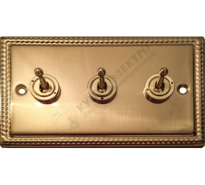 Выключатель/переключатель тумблерный трёхклавишный 20А-250В, серия Grant, цвет Матовая латунь