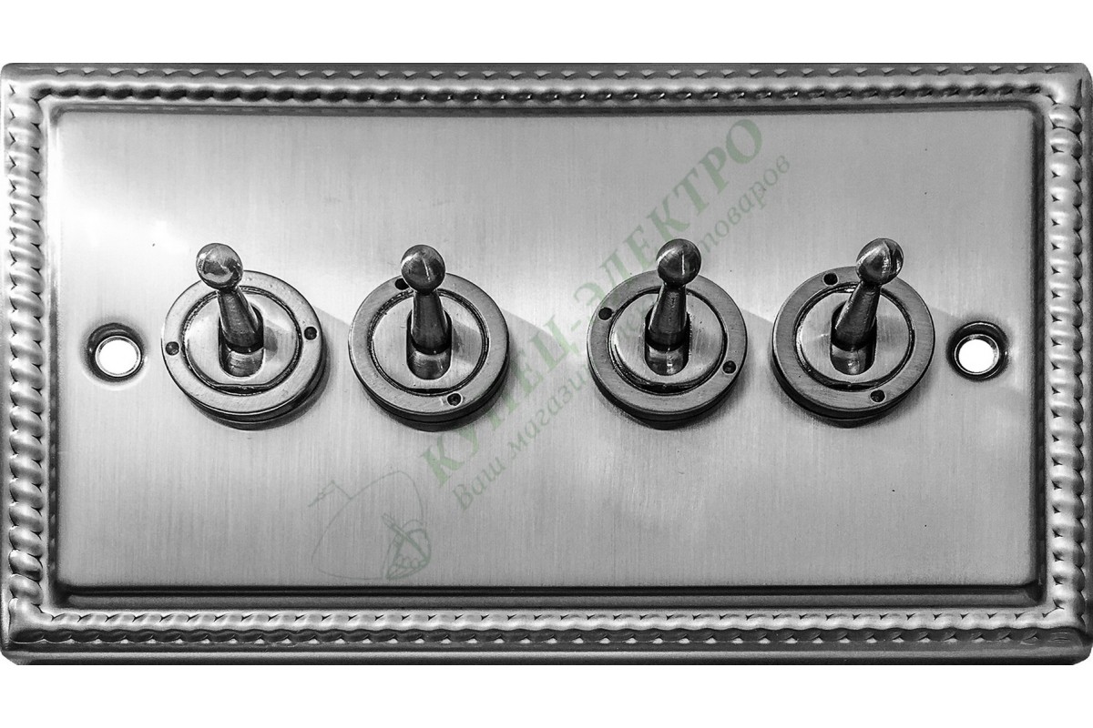 Выключатель/перключатель тумблерный четырёхклавишный 20А-250В, серия Grant, цвет Матовая сталь