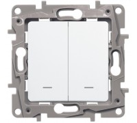 Механизм выключателя 2-кл. СП ETIKA винт бел. Leg 672202 – элемент электроустановочного оборудования серии ETIKA. Представляет собой механизм выключателя с двумя клавишами. Белого цвета. Изготовлен из пластика. Монтируется под штукатурку.