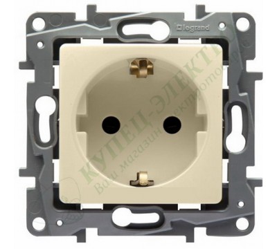 Розетка электрическая с заземлением со шторками, винтовые зажимы, цвет слоновая кость (арт. 672322)