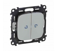 Valena ALLURE Выключатель двухклавишный 10А 250В с лицевой панелью, безвинтовые зажимы. Цвет: Алюминий (арт. 752005+755027)