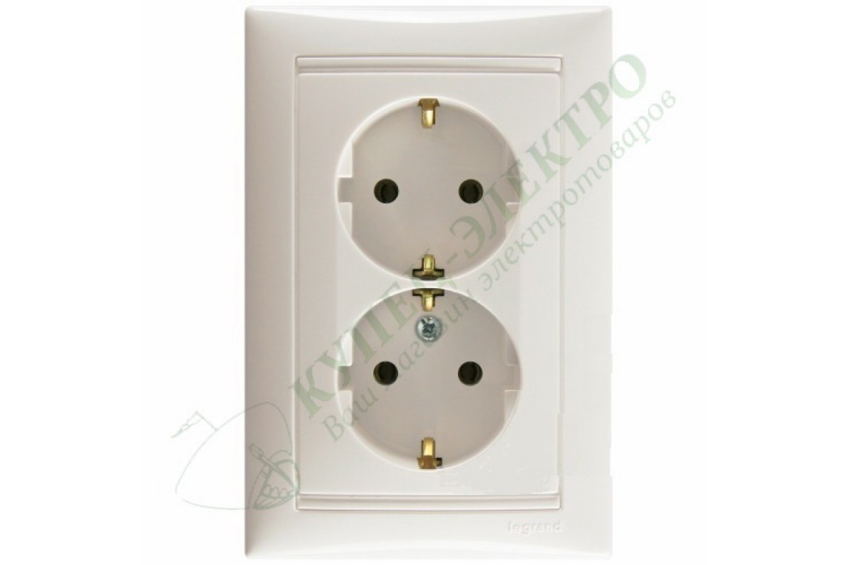 Valena Розетка силовая двойная 2X2К+З со шторками, в сборе, цвет: Белый (арт. 774427)