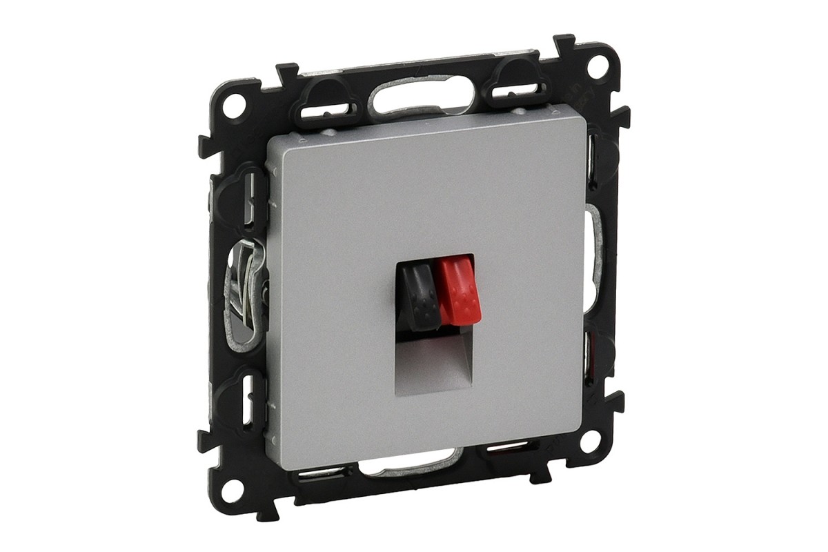 Valena LIFE Аудиорозетка одиночная с пружинными зажимами, с лицевой панелью. Цвет: Алюминий (арт. 753072+755362)