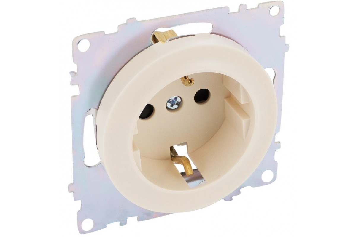 Розетка с заземлением с защитными шторками и винтовыми контактактами, цвет: Бежевый (арт. 1E10101301)