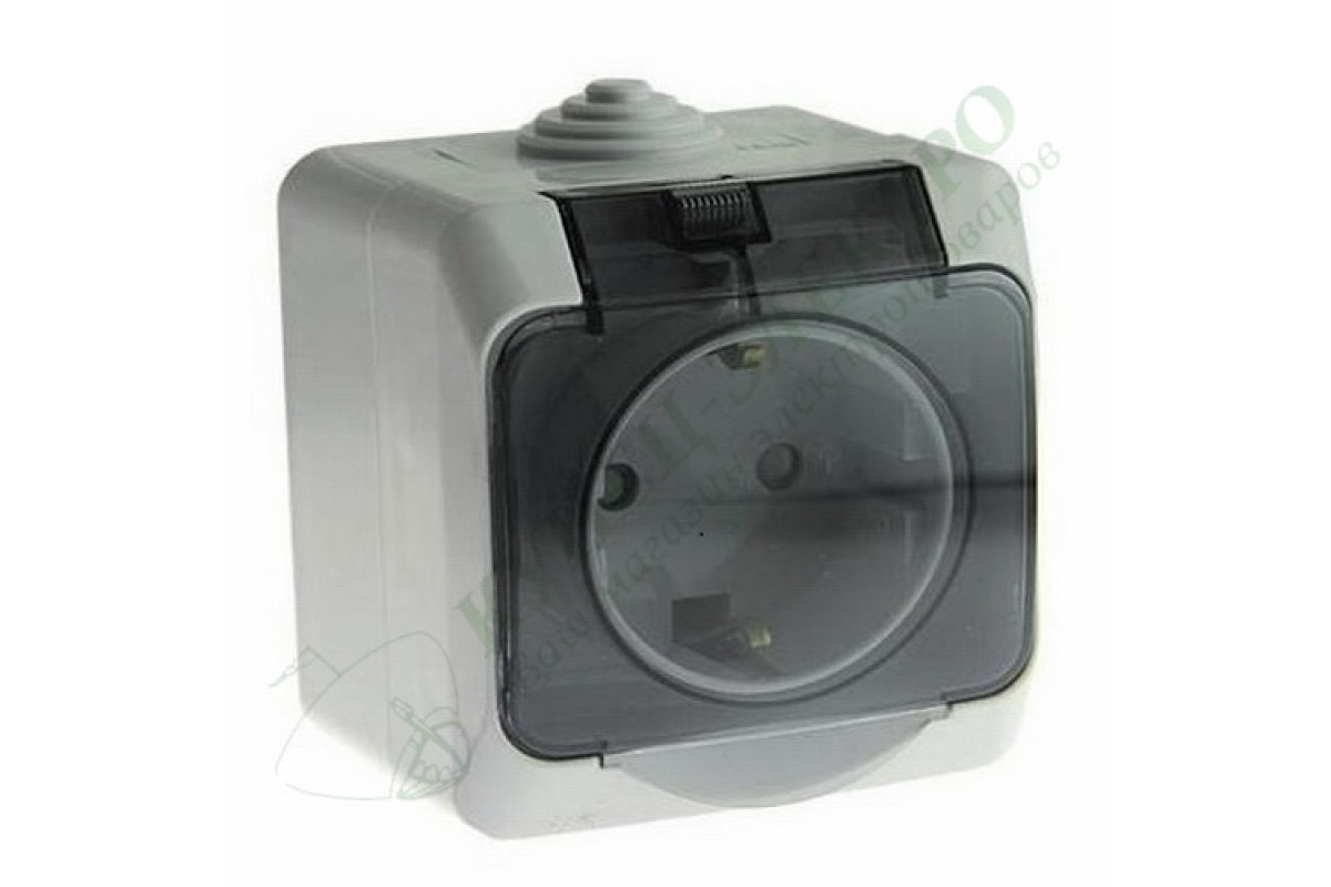 Розетка влагозащитная с заземлением "Этюд" ,со шторками, IP44, цвет: Белый, (арт. PA16-044B)
