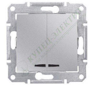 Выключатель двухклавишный сх.5, с синей подсветкой, цвет алюминий, (арт.SDN0300360)